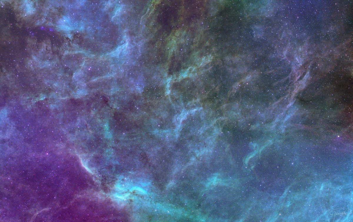 Cette œuvre astrophotographique vous emmène au cœur de la constellation du Cygne, dans les régions les plus riches de la Voie Lactée. Réalisée à partir de plusieurs heures de captation et composée en mosaïque de 4 panneaux selon la palette scientifique SHO (Soufre – Hydrogène – Oxygène), elle révèle avec intensité les nuages interstellaires, les filaments de gaz et les textures subtiles qui structurent notre ciel.